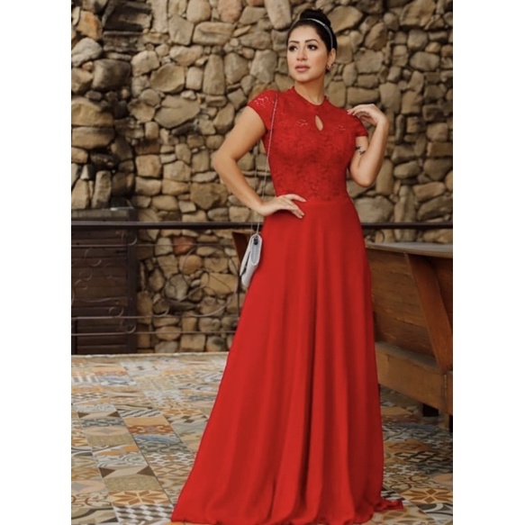 Product id: Vestido para madrinha de casamento best sale vermelho longo